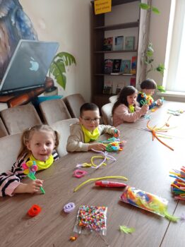 W naszej bibliotece odbyło się urocze spotkanie w wiosenno-świątecznym klimacie z grupą Motylków z Przedszkola nr 4. Dzieci wysłuchały opowiadania teatrzyku kamishibai – „Idzie wiosna, Wielkanoc tuż, tuż…” które mówiło o wiośnie i polskich tradycjach wielkanocnych oraz o tym, co dzieje się przed świętami w domach i w przyrodzie. Rozmawialiśmy o tym jakie tradycje wielkanocne lubimy najbardziej, a następnie robiliśmy z wyciorków, czyli pluszowych drucików kreatywnych wiosenne kwiatki oraz wielkanocne kurczaczki, które mali artyści zabrali ze sobą.
